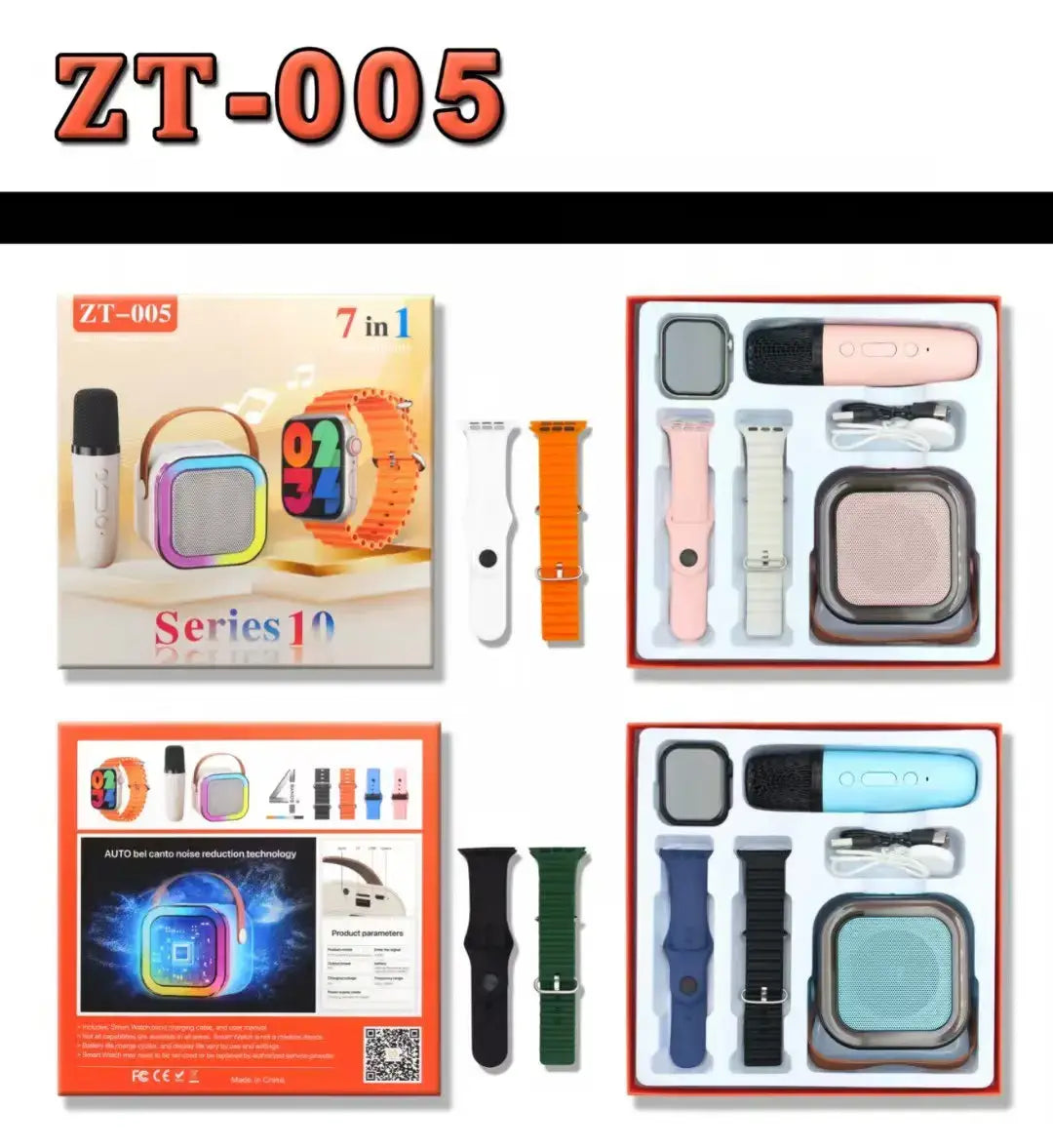 Experience the ultimate 7-in-1 smartwatch with the ZT005, featuring Bluetooth calling, music playback, heart rate and sleep monitoring, IP68 waterproof design, and more. Stay connected, active, and stylish with this all-in-one smartwatch.